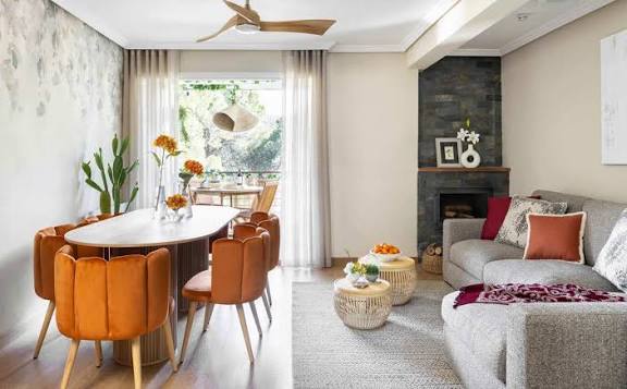 3. Accesorios y decoración: jarrones, lámparas y alfombras en mostaza o terracota aportan acentos de color sin saturar el espacio.