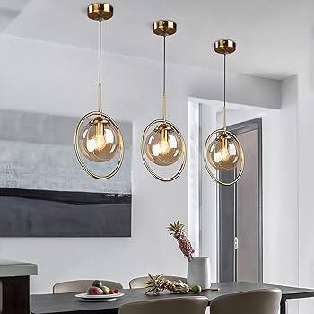 Lámparas colgantes sobre la mesa: La mesa del comedor es el lugar perfecto para un par de lámparas colgantes doradas. Puedes optar por un solo diseño grande o por una serie de lámparas más pequeñas a diferentes alturas. El dorado complementa muy bien los materiales de las mesas de comedor, como la madera y el mármol, creando un ambiente lujoso y cálido para compartir.